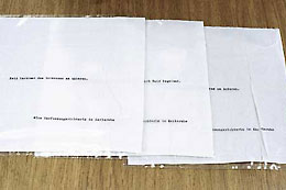 „Neid bestimmt das Interesse am Anderen”, eine Verfassungsrichterin in Karlsruhe, außerdem Textfragmente aus: Naomi Klein „No Logo!” und Sylvie Fleury: „49000”